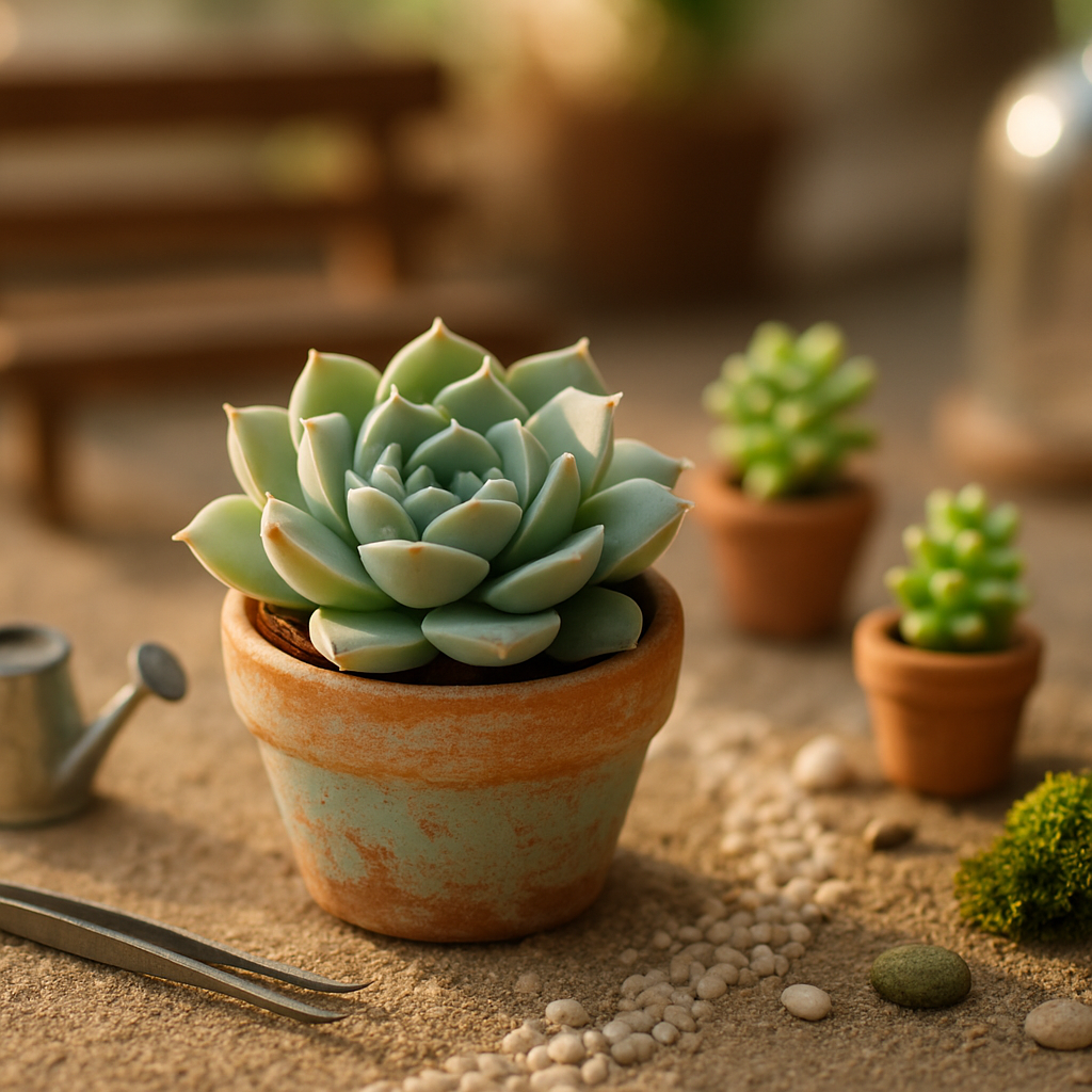 Außerdem: Miniatur-Sukkulenten Szenen eignen sich hervorragend für Fotografie, Social Media und kleine Handwerksmärkte. Ein gut gestaltetes Arrangement kann viral gehen — schließlich lieben Menschen Miniaturen und Pflanzen gleichermaßen.